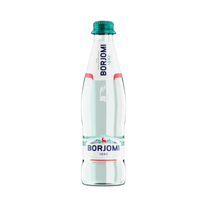 The legendary Borjomi mineral water in the 0.5 L glass bottle.